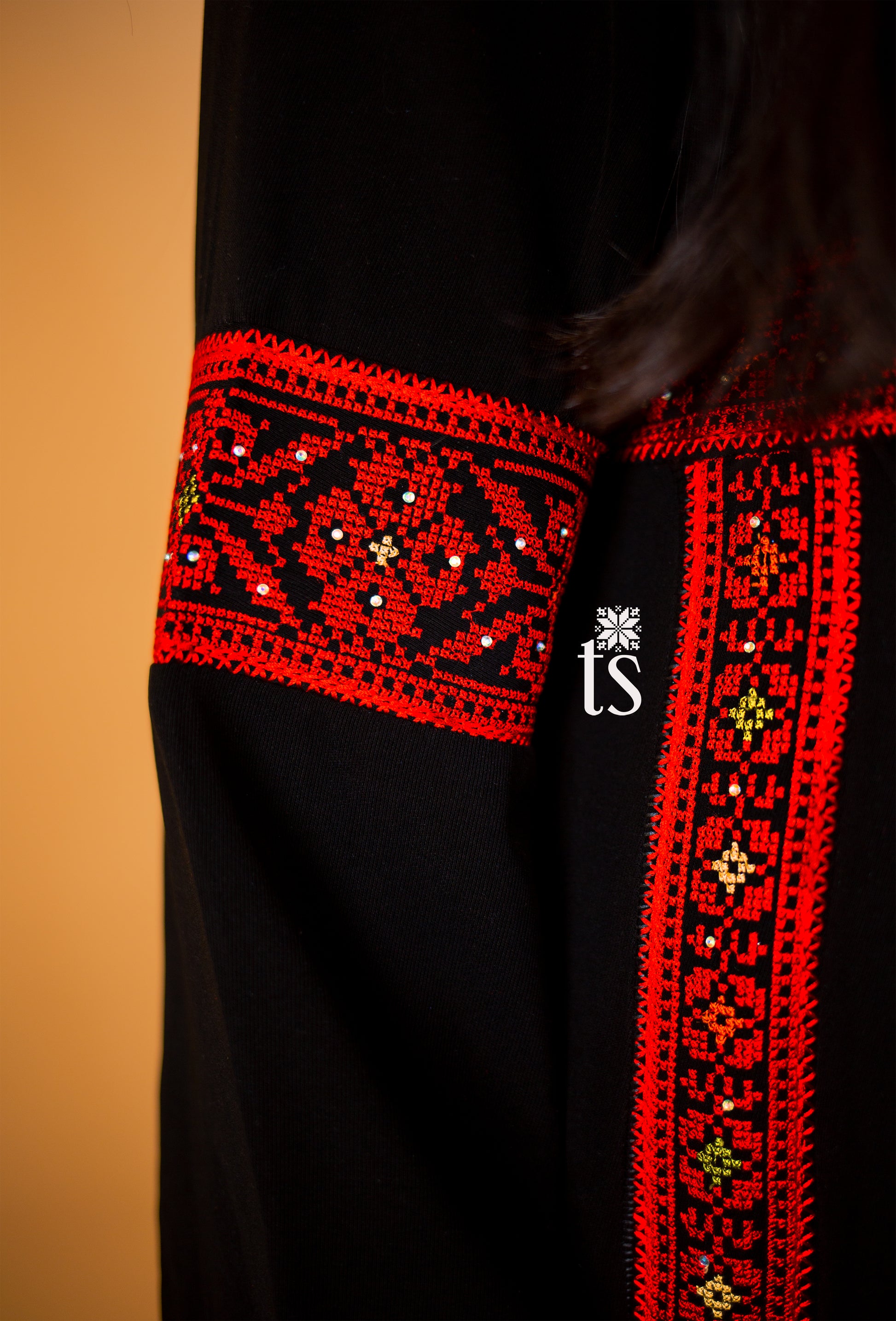 Our Classic Red Embroidered and Sequined Palestinian Thobe is a must-have in every wardrobe!