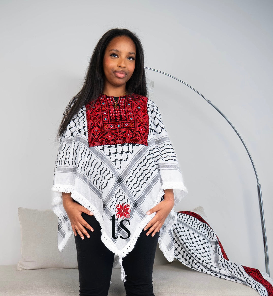 Introducing the poncho's redesigned and beautifully made from Palestinian Keffiyeh's.