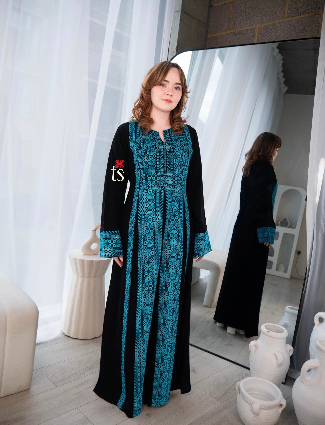 Our Traditional Blue and Black Embroidered Palestinian Thobe is a must-have in every wardrobe!