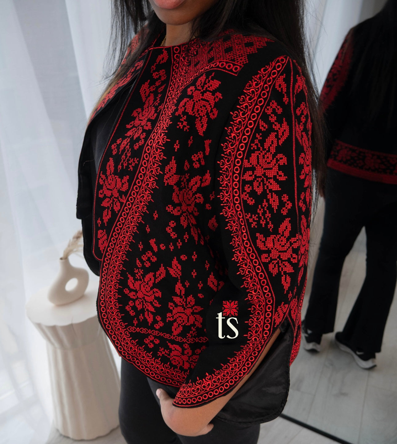 A beautiful modern twist to Tatreez! The Unique Red Tatreez Blazer is an elegant piece bound to make you stand out in its vibrant colour and premium embroidery.